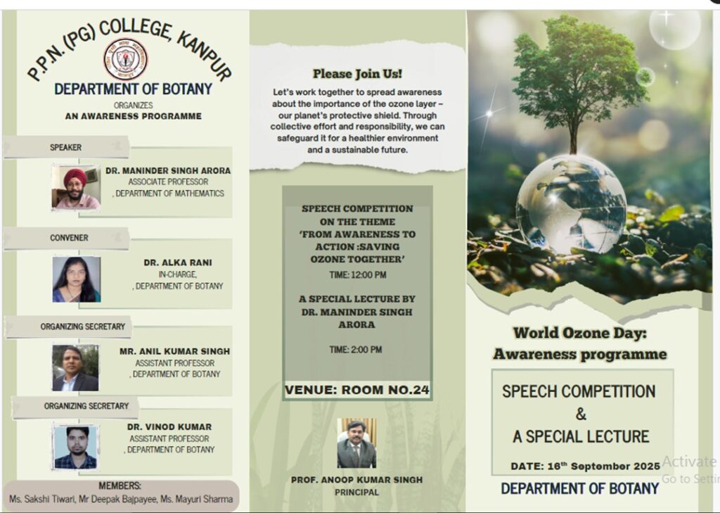The Department of Botany expresses its heartfelt gratitude to Prof. Anoop Kumar Singh, Principal, for his continuous support and encouragement in organizing such awareness-oriented programmes. The event concluded with a strong message: moving from awareness to action is essential to safeguard the ozone layer and secure a sustainable future.
